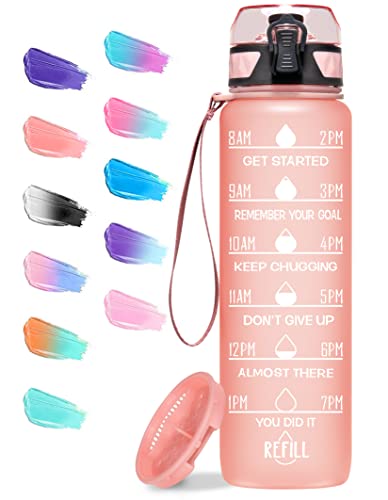 I love this bottle because it’s nice and big, so you only have to fill it twice a day. It’s also way easier than you think to hit the markers – a few big sips and you’re there. Plus, it comes in so many cute colors.