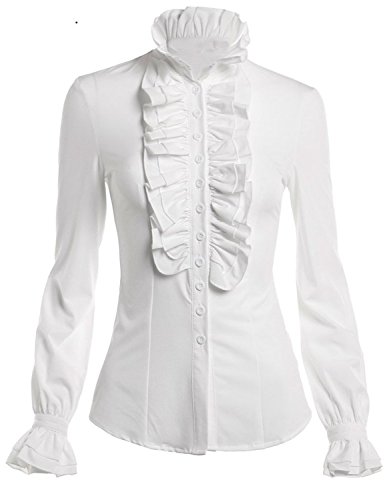 For this costume, you need a white button-down shirt, a black skirt, and an umbrella. See if any guys you know have a red bow tie.