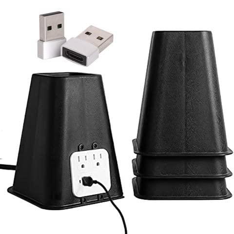 Optional but really nice to have, bed risers double your storage space in your room. For more convenience, get these 7″ risers — they come with a built-in plug for charging your devices in bed.